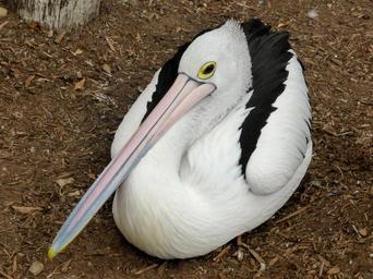 Keywords: pelican conspicillatus avian waterbird beak white bird pink australian seabird wild resting