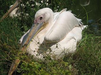 Keywords: Pelican sitting.jpg en A Great White Pelican sitting own Tamar Assaf Pelecanus onocrotalus captive