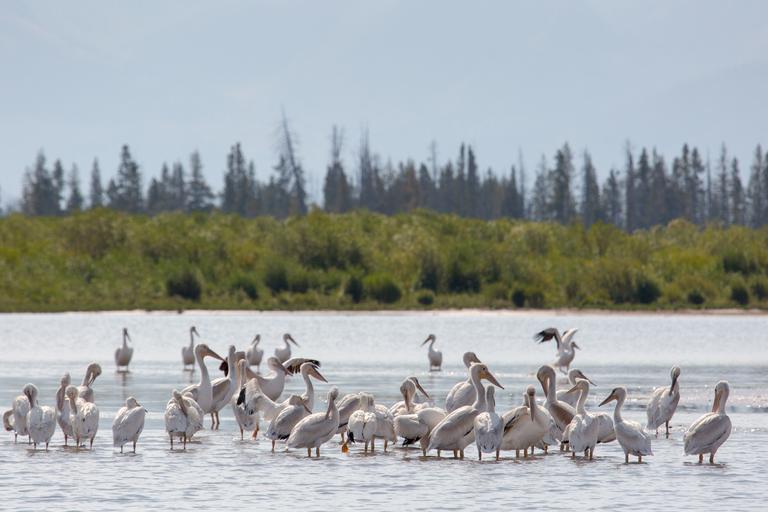 Keywords: pelicans american white birds water wading waterfowl wildlife nature seabird bill standing