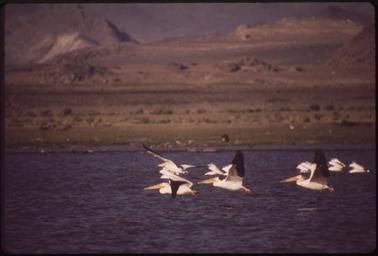 | Keywords: PELICANS IN FLIGHT OVER PYRAMID LAKE. ANAHOE ISLAND, OF THE LAKE, IS A FEDERAL WILDLIFE SANCTUARY AND BREEDING GROUND... - NARA - 552911.jpg Scope and content General notes 552911 Local identifier 412-DA-10426 Environmental Protection Agency 12/02/1970 - NARA-Author Dovydenas Jonas 1939- Photographer 2724131 <br /> Pyramid Lake Washoe Nevada United States North and Central America lake 4207609 40 05 -119 55 <br /> Still Picture Records Section Special Media Archives Services Division NWCS-S National Archives at College Park 8601 Adelphi Road College Park MD 20740-6001 06/1973 Record group Record Group 412 Records of the Environmental Protection Agency 1944 - 2006 Record group ARC 708 DOCUMERICA The Environmental Protection Agency's Program to Photographically Document Subjects of Environmental Concern compiled 1972 - 1977 Series ARC 542493 File unit File unit ARC Variant control numbers Agency-Assigned Identifier 174/46/010426<br /> NAIL Control Number NWDNS-412-DA-10426 Other versions <gallery> File PELICANS_IN_FLIGHT_OVER_PYRAMID_LAKE _ANAHOE_ISLAND _OF_THE_LAKE _IS_A_FEDERAL_WILDLIFE_SANCTUARY_AND_BREEDING_GROUND _-_NARA_-_552911 tif tif File PELICANS_IN_FLIGHT_OVER_PYRAMID_LAKE _ANAHOE_ISLAND _OF_THE_LAKE _IS_A_FEDERAL_WILDLIFE_SANCTUARY_AND_BREEDING_GROUND _-_NARA_-_552911 jpg jpg </gallery> NARA-cooperation PD-USGov Pelecanidae in flight |