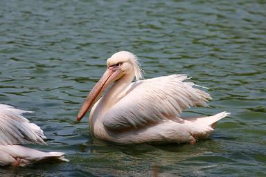 Keywords: pelicans swimming in lake bird giant fish eater flyer large spout