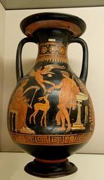 | Keywords: Pelike fawn BM F315.jpg Psalterion 001 jpg British Museum Tarrytown Group A woman holding a harp Eros and a youth with a fawn Apulian red-figured pelike ca 320 “310 BC From Anzi Femme tenant une harpe Éros et un jeune homme au faon Pélikè apulien à figures rouges vers 320-310 av J -C Provenance Anzi credit line Former collection of Antoine-Edme Durand accession number GR 1836 2-24 142 Cat Vases F 315 Upper floor room 73 The Greeks in Southern Italy Jastrow 2006 Eros in ancient Greek pottery Apulian red-figure pottery Ancient Greek pottery in the British Museum Durand Collection Pelikai Tarrytown Group Harps in art Room 73 British Museum |