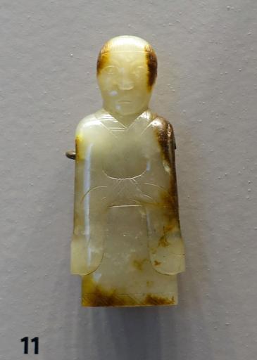 | Keywords: Pendant in the shape of a Human Figure, China, Warring States period, 5th-3rd century BC, nephrite - Arthur M. Sackler Museum, Harvard University - DSC00766.jpg en Exhibit in the Arthur M Sackler Museum Harvard University Cambridge Massachusetts USA This artwork is in the public domain because the artist died more than 70 years ago 2015-04-11 10 44 44 own Daderot other versions PD-old-70 cc-zero Jade of the Warring States period in the Arthur M Sackler Museum | ||||