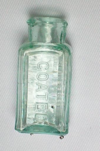 | Keywords: saint john saintjohn bottle new brunswick newbrunswick st john stjohn drugstore patent medicines patentmedicines druggist indoor drawing A tiny 2" tall , rolled lip, aqua ,patent medicine . Embossed all around. Left panel : Sugar, Right panel: Pills. see other photo for front. Blank base. A tiny 2" tall , rolled lip, aqua ,patent medicine . Embossed all around. Left panel : Sugar, Right panel: Pills. see other photo for front. Blank base. | ||||