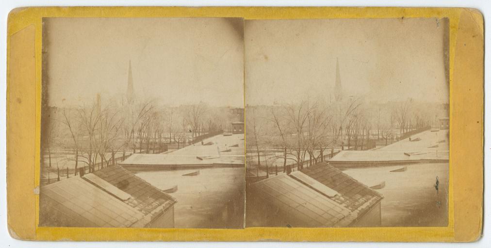 | Keywords: stereographs philadelphia streets market street marketstreet penn square pennsquare arch street methodist episcopal church archstreetmethodistepiscopalchurch broad street broadstreet steeples churches snow photo border Rooftop view showing the steeple of the Arch Street Methodist Episcopal Church (built 1869-70) at 55-65 N. Broad Street and the tree-covered North and South Penn Squares (removed circa 1871 for the construction of City Hall). Snow covers the grounds of the squares and the roofs of the adjacent buildings.  Accession number: P.2011.47/1924 Rooftop view showing the steeple of the Arch Street Methodist Episcopal Church (built 1869-70) at 55-65 N. Broad Street and the tree-covered North and South Penn Squares (removed circa 1871 for the construction of City Hall). Snow covers the grounds of the squares and the roofs of the adjacent buildings.  Accession number: P.2011.47/1924 |
