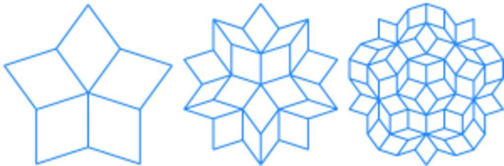 Keywords: Penrose tiling 3 iterations.png Made from Image Penrose tiling 3 iterations svg using Inkscape to resemble Image Penrose tiling3 jpg 2007-02-24 own assumed Kjoonlee Generation Made using Inkscape Effects †’ Render †’ L-system wikitable summary settings for generating the tiling in Inkscape Axiom N++N++N++N++N - Rules OA++pA----NA-OA----MA++; N +OA--PA---MA--NA+; O -MA++NA+++OA++PA-; P --OA++++MA+PA++++NA--NA; A - Order variable - Step length variable - Randomize step 0 - Left/right angle 36 - Randomize angle 0 - Stroke width variable Penrose tilings Order 3 |
