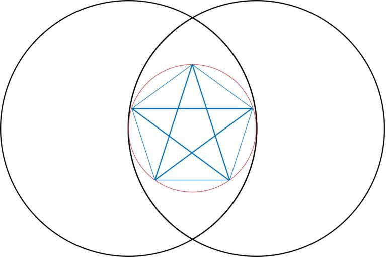 Keywords: Pentad.svg The Pythagoreans used this symbol as a secret sign to recognize each other It represents the number five and life power and invulnerability Hemenway Priya “ Divine Proportion pp 56 Sterling Publishing ISBN 1-4027-3522-7 2006-08 Jossi public domain Pentagram inscribed within Vesica Piscis configuration two circles of equal diameter the center of each being on the circumference of the other Pythagorean symbols Pentagrams Sacred geometry Vesica piscis |