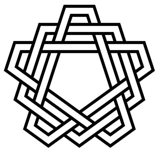 | Keywords: Pentagonal-knot.svg Ornamental pentagonal knot topologically equivalent to File Pentagram-circle-interlaced svg For a unicursal pentagonal knot see File Pentagonal-knot-unicursal svg Self-made graphic converted from a version of the following PostScript vector source code <pre> 306 396 translate 2 4 dup scale/plr 25 sub 2 47213472 12 5 mul mul dup 3 2 roll 72 mul 90 add dup 3 1 roll cos mul 3 1 roll sin mul def/P /x exch def 4 x plr 3 x plr 2 x plr 1 x plr 0 x plr moveto 4 lineto repeat closepath stk def/xyadd 3 2 roll add 3 1 roll add exch def/h 42 5325 def/ang exch 72 mul add dup sin h mul exch cos h mul def/stk gsave 50 3 div setlinewidth 0 setgray stroke grestore stroke def 1 setgray 50 6 div setlinewidth 3 P 0 3 plr 0 90 ang xyadd moveto 0 2 plr lineto stk 0 3 plr 0 90 ang neg exch neg exch xyadd moveto 0 2 plr lineto stk 1 3 plr 1 126 ang xyadd moveto 1 2 plr lineto stk 1 3 plr 1 126 ang neg exch neg exch xyadd moveto 1 2 plr lineto stk 2 3 plr 2 162 ang xyadd moveto 2 2 plr lineto stk 2 3 plr 2 162 ang neg exch neg exch xyadd moveto 2 2 plr lineto stk 3 3 plr 3 198 ang xyadd moveto 3 2 plr lineto stk 3 3 plr 3 198 ang neg exch neg exch xyadd moveto 3 2 plr lineto stk 4 3 plr 4 234 ang xyadd moveto 4 2 plr lineto stk 4 3 plr 4 234 ang neg exch neg exch xyadd moveto 4 2 plr lineto stk 2 P showpage EOF</pre> 2009 AnonMoos 2 component links Decorative knots Regular pentagons 5-fold rotational symmetry Images with PostScript source code 15 crossing number knots and links Outline knots and links |
