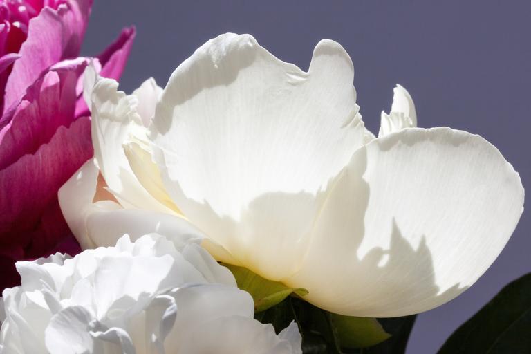 Keywords: pentecost bouquet peony flower nature flora spring blossom bloom ornamental plant pink white green double flower lush macro