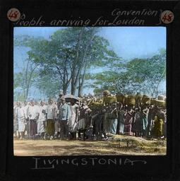 | Keywords: "People arriving for Loudon convention, Livingstonia", Malawi, ca.1910 (imp-cswc-GB-237-CSWC47-LS4-1-048).jpg en <br> People arriving for Loudon convention Livingstonia Malawi ca 1910 Photograph of a group of African men women and children possibly of the Ngoni people arriving for a convention in Loudon in northern Malawi Men can be seen grouped to the front of the picture with women behind carrying straw baskets on their heads ; This belongs to a series of Church of Scotland Foreign Missions Committee lantern slides relating to Rev Donald Fraser 1870-1933 Rev Donald Fraser the Scottish missionary was born in Argyllshire Scotland the son of a Free Church minister In his youth Rev Fraser helped found the Student Volunteer Movement in Britain and the World Student Christian Federation before beginning missionary service in Malawi with the Free Church of Scotland He worked in Malawi from 1896 until he returned to Scotland in 1925 He was first posted to Ekwendeni and later Embangweni Rev Fraser worked closely with the Ngoni people Photographer Unknown Filename imp-cswc-GB-237-CSWC47-LS4-1-048 tif Coverage date circa 1910 Part of collection International Mission Photography Archive ca 1860-ca 1960 Type images Part of subcollection Photographs from the Centre for the Study of World Christianity University of Edinburgh U K ca 1900-ca 1940s Repository name Centre for the Study of World Christianity Archival file impaunpub_Volume7/1497 url Repository address The University of Edinburgh School of Divinity New College Mound Place Edinburgh EH1 2LX United Kingdom Geographic subject country Malawi Format aacr2 1 lantern slide 8 x 8 cm Geographic subject continent Africa Rights Contact the repository for details Part of series Donald Fraser of Loudon LS4/1 Repository email divinity-CSWC ed ac uk Subject lcsh Keyword Religious gatherings; Village communities Date created circa 1910 Publisher of the digital version University of Southern California Libraries Subject aat genre group portraits Format aat lantern slides Legacy record ID impa-m68546 Access conditions http //www ed ac uk/schools-departments/divinity/research/centres/world-christianity/collections-resources File GB 237 CSWC47/LS4/1/48 1910 author http //digitallibrary usc edu/cdm/ref/collection/p15799coll123/id/64618 PD-old-70-1923 Magic lantern images Images from USC Digital Library uploaded by Fæ International Mission Photography Archive ca 1860-ca 1960 Headcarrying in Malawi |