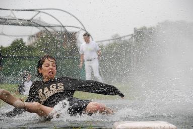 MAKE A MEME View Large Image people child sports baseball sliding train water drop wet fun