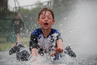 Keywords: people child sports baseball sliding train water drop wet fun