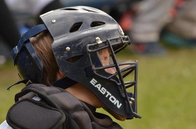 Keywords: people child sports baseball catcher helmet mask eyes close