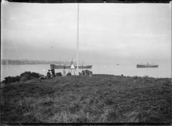 | Keywords: blackandwhite monochrome outdoor photo border black and white View of flagstaff at Northcote Point looking across Waitemata Harbour toward Auckland. A woman and a man are standing and another woman with a dog are sitting at the base of the flagstaff. Two ships can be seen in the harbour close to the Point. Photograph taken by William A Price, circa 1909 William Archer Price lived and practised in Queen Street, Northcote, 1909-1910. Source: New Zealand Post Office directories Quantity: 1 b&w original negative(s). Physical Description: Dry plate glass negative 4.5 x 6.5 inches People gathered round the flagstaff at Northcote, Auckland. Price, William Archer, 1866-1948 :Collection of post card negatives. Ref: 1/2-000345-G. Alexander Turnbull Library, Wellington, New Zealand. natlib.govt.nz/records/22343425 View of flagstaff at Northcote Point looking across Waitemata Harbour toward Auckland. A woman and a man are standing and another woman with a dog are sitting at the base of the flagstaff. Two ships can be seen in the harbour close to the Point. Photograph taken by William A Price, circa 1909 William Archer Price lived and practised in Queen Street, Northcote, 1909-1910. Source: New Zealand Post Office directories Quantity: 1 b&w original negative(s). Physical Description: Dry plate glass negative 4.5 x 6.5 inches People gathered round the flagstaff at Northcote, Auckland. Price, William Archer, 1866-1948 :Collection of post card negatives. Ref: 1/2-000345-G. Alexander Turnbull Library, Wellington, New Zealand. natlib.govt.nz/records/22343425 |