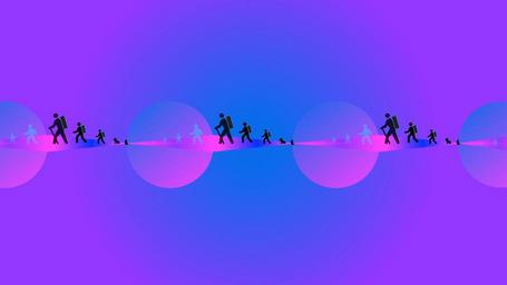 Keywords: people hiking silhouette virtual reality oneness 3d spiritual life travel walking purple background universe