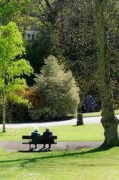 Keywords: people park furniture bench husbands couple age relaxation trip season spring summer men women male female tree trees green grass
