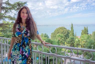 Keywords: people person woman female fashion dress hair happy white self portrait selfie villa cortine palace picture photo caucasian cheerful view scenic lake garda sirmione italy enjoyment leisure relaxation