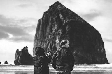 Keywords: people picture photograph man guy beach shore rocks boulders black and white