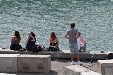| Keywords: outdoor Taken from elevated walkway in Silo Park. Three women sit at left and look left towards something out of frame, while two men sit at right with a blue fishing pole propped against the bench. Cement blocks decorate the foreground. Taken from elevated walkway in Silo Park. Three women sit at left and look left towards something out of frame, while two men sit at right with a blue fishing pole propped against the bench. Cement blocks decorate the foreground. | ||||