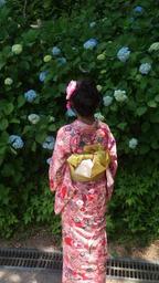 Keywords: people women's woman japan kimono figure bathrobe turned pattern own back black flaxen hair decoration dress up