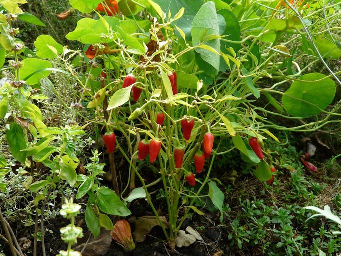 Keywords: pepper crop paprika pods red orange sharp chili bush plant