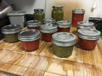 Keywords: indoor food beverage meal I hope it thickens up nicely, red and green pepper jelly just out of the canning bath. I hope it thickens up nicely, red and green pepper jelly just out of the canning bath.