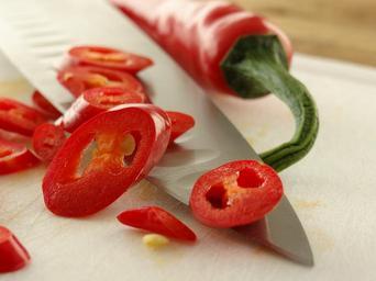 Keywords: pepperoni cut knife sharp red
