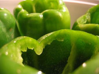 Keywords: peppers bell green vegetable veggie ingredient cut prepared cooking stuffed close up macro agriculture food nutrition fresh produce colorful