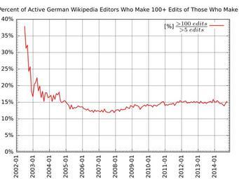 | Keywords: Percent of Active German Wikipedia Editors Who Make 100+ Edits.svg en Anteil der aktiven deutschen Wikipedia-Autoren mit mehr als 100 Bearbeitungen pro Monat geteilt durch die Anzahl der mit mehr als 5 Bearbeitungen Daten von http //stats wikimedia org/DE/TablesWikipediaDE htm Own Gnuplot 2014-10-07 Kopiersperre <span class signature-talk ></span> cc-zero Percent of Active English Wikipedia Editors Who Make 100 Edits png German Wikipedia active editor statistics User Kopiersperre Diagrams |
