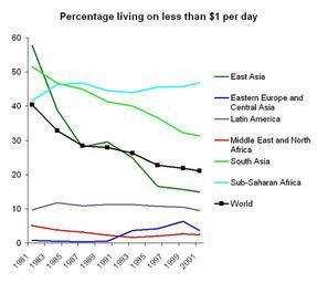| Keywords: Percentage living on less than $1 per day 1981-2001.png en Chart showing the percentage of the population living on less than 1 per day 1981-2001 It excludes data for North America Based on US 1 08 in 1993 en Purchasing Power Parity PPP and then adjusted for country-specific inflation Data source How Have the World's Poorest Fared Since the Early 1980s by Shaohua Chen and Martin Ravallion http //econ worldbank org/external/default/main ImgPagePK 64202990 entityID 000112742_20040722172047 menuPK 64168175 pagePK 64210502 theSitePK 477894 piPK 64210520 Table 3 p 28 en wikipedia Chinneeb CommonsHelper 2006-12-29 Ultramarine wikipedia en en English Wikipedia Ultramarine svg original upload log page en wikipedia Percentage_living_on_less_than_ 241_per_day_1981-2001 png 2006-12-29 20 40 aomarks 733×655× 21216 bytes <nowiki>correct East Asida to East Asia and removed small artifact</nowiki> 2006-09-13 22 14 Ultramarine 733×655× 23060 bytes <nowiki>Data source How Have the World's Poorest Fared Since the Early 1980s by Shaohua Chen and Martin Ravallion http //econ worldbank org/external/default/main ImgPagePK 64202990 entityID 000112742_20040722172047 menuPK 64168175 pagePK 64210502 theSitePK 4</nowiki> Development Capitalism Poverty |