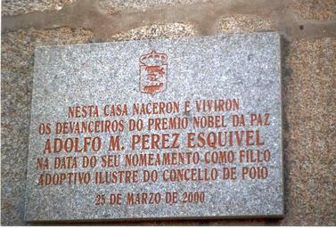 Keywords: Pérez Esquivel.jpg es Declaración del Ayuntamiento de Poio nombrando a Adolfo M Pérez Esquivel premio Nóbel de la Paz como hijo adoptivo de Poio Own 2002-08 Fev Poio Adolfo Pérez Esquivel Here-lived plaques in Spain Plaques referencing 2000 Here-was-born plaques in Galicia Spain Plaques in the province of Pontevedra