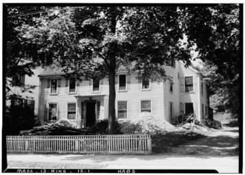 | Keywords: Perez Lincoln house.jpg en Photograph of the Perez Lincoln House 123 North Street moved from original location Hingham Plymouth County Massachusetts Historic American Buildings Survey Library of Congress Washington D C The house was originally built by Joseph Andrews Hingham's first constable and first town clerk likely in 1640 Although now clapboarded the house was originally of timber frame construction and was Hingham's first garrison house It boasted massive timbers and thick log walls and was used by early settlers as a gathering spot when an alarm went out over Native American attacks The house is likely the oldest home in Hingham and the oldest authenticated garrison house Joseph Andrews sold the house for a nominal fee to his son Capt Thomas Andrews and the home became known as the Andrews House Following Andrews's death the home passed into the Lincoln family in which it was conveyed for 225 years by simple inheritance or will from one owner to another Nine generations of the Lincoln family occupied the home http //memory loc gov/pnp/habshaer/ma/ma0800/ma0866/photos/075555pv jpg Frank O Branzetti Historic American Buildings Survey 1941-06-09 Hingham Massachusetts Houses in Plymouth County Massachusetts PD-USGov |