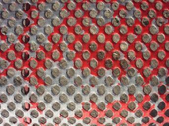 Keywords: perforated sheet color red bright bare scuffed metal old worn pattern abstract background