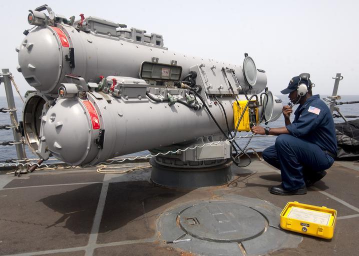 Keywords: Performing maintenance 120530-N-NL401-027.jpg en Gunner's Mate 3rd Class Calvin Brooks performs maintenance on MK 32 surface-vessel torpedo tubes aboard the guided-missile destroyer USS James E Williams James E Williams is deployed to the U S 5th Fleet area of responsibility conducting maritime security operations theater security cooperation efforts and support missions as part of Operation Enduring Freedom 2012-05-30 DDG 95 https //www dvidshub net/image/593962 120530-N-NL401-027 2012-06-04 22 51 RED SEA PD-USGov-Military-Navy Operation Enduring Freedom Images from DoD uploaded by Fæ |