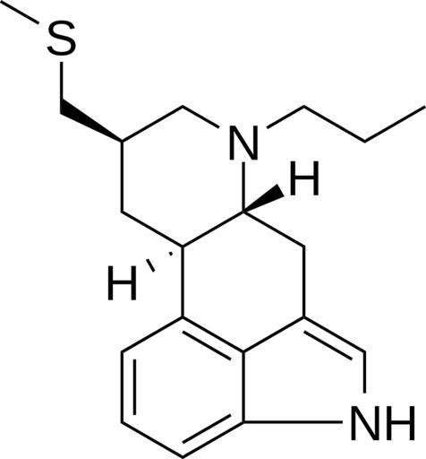 Keywords: Pergolide.svg en 2D structure of pergolide Permax own Harbin 2009-01-23 Antiparkinsonian agents indole alkaloids