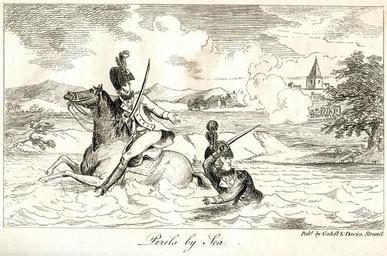 | Keywords: 'Peril at Sea'.jpg en Perils by Sea - The Duke of York's narrow escape across a brook at the Battle of Tourcoing 22nd May 1794 2012-07-07 Scanned from An Accurate and Impartial Narrative of the War by an Officer of the Guards London 1796 first edition anonymous published by Cadell Davies Strand 1796 PD-Art-100 Uploaded with UploadWizard Equestrian drawings 1794 in France |