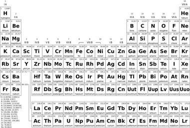 | Keywords: Periodic table simple fr bw.svg en Simple periodic table with localized element names and standard atomic weights IUPAC 2009 Temporarily converted to paths till fixing Wikipedia ™s font problem with DejaVu Sans Condensed but also the previous version of this image works correctly outside of Wikipedia 2013-09-27 17 47 41 own László Németh Source code ; Created in LibreOffice 4 1 2 with this LibreLogo program ; Usage Put this code into an English language document in LibO Writer ; fix one program line for older LibreOffice versions see FIXME in the code ; and click on the Start icon of the View»Toolbars»Logo toolbar ; NEED INTERNET CONNECTION TO RUN THIS PROGRAM table data downloaded from Wikipedia lang input Language de el en fr hu it ru bw int input Color 0 COLORED 1 BLACK/WHITE ; Source pages http //www wikidata org/wiki/Q13584100 uselang hu sources ru D0 A1 D0 BF D0 B8 D1 81 D0 BE D0 BA_ D1 85 D0 B8 D0 BC D0 B8 D1 87 D0 B5 D1 81 D0 BA D0 B8 D1 85_ D1 8D D0 BB D0 B5 D0 BC D0 B5 D0 BD D1 82 D0 BE D0 B2 2 fr Liste_des_ C3 A9l C3 A9ments_chimiques 2 de Liste_der_chemischen_Elemente 1 el CE 9A CE B1 CF 84 CE AC CE BB CE BF CE B3 CE BF CF 82_ CF 87 CE B7 CE BC CE B9 CE BA CF 8E CE BD_ CF 83 CF 84 CE BF CE B9 CF 87 CE B5 CE AF CF 89 CE BD_ CE BA CE B1 CF 84 CE AC_ CE B1 CF 84 CE BF CE BC CE B9 CE BA CF 8C_ CE B1 CF 81 CE B9 CE B8 CE BC CF 8C 2 it Elementi_per_numero_atomico 2 hu K C3 A9miai_elemek_list C3 A1ja 3 if lang en langpage sourceslang0 langfield sourceslang1 ; column with element names on the Wikipedia page GLOBAL annotation posx posy size font font2 lang font DejaVu Sans font2 DejaVu Sans Condensed ; Wikimedia has got problem with it convert the result to path in Inkscape if needed posx 30 posy 40 size 42 ; load and process element data from Wikipedia embedded Python exec import urllib request exec data urllib request urlopen http //en wikipedia org/w/index php action raw title List_of_elements readlines exec table for j in i decode utf-8 replace style \\\ background-color 0x replace \\\ split for i in data if re match \ \d+ \ \ i decode utf-8 ; load and process other language data IF lang en exec data urllib request urlopen http // s wikipedia org/w/index php action raw title s readlines lang langpage IF lang de exec langtable i decode utf-8 split d strip split -1 for i in data if re match \ \d+ \ \ i decode utf-8 langfield-1 ; process and sort German data exec langtable i decode utf-8 split 0 split 0 split -1 strip \t split 0 split < 0 split 0 strip \t split -1 int i decode utf-8 split 2 strip \t for i in data if re match \ \t \d+ \t \ \ i decode utf-8 exec import operator exec langtable sort key operator itemgetter 1 exec langtable i0 for i in langtable langtable ; a few fixes table793 Mercury ; instead of Mercury element table117 24 31 ; Mg table257 55 85 ; Fe table637 157 3 ; Gd ; add missing positions TO the table FOR i IN RANGE 56 71 tablei5 i “ 56 “ 4 tablei6 8 5 FOR i IN RANGE 88 103 tablei5 i “ 88 “ 4 tablei6 9 5 ; helper functions TO width_of_last_object OUTPUT _ drawpage getByIndex _ drawpage getCount -1 getSize Width / 100 __MM_TO_PT__; IN PT END ; FIXME remove the space before the END TO delete_last_object _ drawpage remove _ drawpage getByIndex _ drawpage getCount -1 END TO element size d l18n bw PENUP POSITION posx + INT d5 size posy + FLOAT d6 size 1 2 HEADING 0 ; show group number IF INT d0 IN 1 2 4 5 6 7 8 9 21 22 23 24 25 26 27 28 29 30 IF lang en FORWARD size/2 + size/5 LABEL 0 1 d5 FORWARD size/2 + size/5 LABEL 0 4 5 d5 groupname 1 I ¯A 2 II ¯A 3 III ¯B 4 IV ¯B 5 V ¯B 6 VI ¯B 7 VII ¯B 8 • ” ” ” 9 VIII ¯B 10 ” ” ” •® 11 I ¯B 12 II ¯B 13 III ¯A 14 IV ¯A 15 V ¯A 16 VI ¯A 17 VII ¯A 18 VIII ¯A d5 IF lang not in hu groupname SUB groupname FONTSIZE 10 LABEL 0 1 groupname BACK size/2 + size/5 IF bw FILLCOLOR WHITE FILLCOLOR INT d1 PENDOWN RECTANGLE size size 1 2 PENUP IF M IN d2 OR m IN d2 OR 2 < COUNT d2 FONTFAMILY font2 FONTFAMILY font FONTWEIGHT BOLD FONTSIZE size/2 1 TEXT d2 FONTWEIGHT UPRIGHT FONTFAMILY font BACK size 1 2/2-size/20 fontsiz 5 6 FONTSIZE size/fontsiz IF l18n name l18nINT d0 -1 name d3 if lang de name name lower LABEL 0 1 name fontdescratio 492/2048 ; DejaVu Sans Condensed IF width_of_last_object > size 0 95 delete_last_object FONTFAMILY font2 LABEL 0 1 name width width_of_last_object IF width > size 0 95 delete_last_object fontsiz2 size/fontsiz size/width 0 95 FORWARD size/fontsiz fontdescratio - fontsiz2 fontdescratio FONTSIZE fontsiz2 LABEL 0 1 name BACK size/fontsiz fontdescratio - fontsiz2 fontdescratio FONTSIZE size/5 8 FONTFAMILY font2 FORWARD -size/2 + size/20 size 1 2/2-size/20 + size 0 6 “ size/20 HEADING 0 LABEL 1 -1 d0 RIGHT 90 FORWARD size “ size/10 LEFT 90 weight FINDALL \d+ \d+ \\d+\ d7 0 IF weight0 wsize COUNT FINDALL \d+ weight 0 w2size COUNT FINDALL \d+ weight 0 IF w2size > 4 “ wsize weight + STR 4 “ wsize + f FLOAT weight IF d2 IN H Li B C N O Mg Si S Cl Br Zn Se Mo Tl weight weight + IF lang not in en weight SUB weight LABEL -1 -1 weight END HOME CLEARSCREEN HIDETURTLE PENSIZE 0 5 PENUP bwtext FALSE TRUE _bw bw ; save black and white images with _bw label PICTURE periodic_table_simple_ s s svg lang bwtext FONTSIZE size/5 8 FONTFAMILY font2 ; legend POSITION posx + size/2 + size/5 8/2 posy + size 1 2 7 5 + size/20 HEADING 0 LABEL -1 -1 legend H 1 00784 1 00811\nLi 6 938 6 997\nB 10 806 10 821\nC 12 0096 12 0116\nN 14 00643 14 00728\nO 15 99903 15 99977\nMg 24 304 24 307\nSi 26 084 26 086\nS 32 059 32 076\nCl 35 446 35 457\nBr 79 901 79 907\nTl 204 382 204 385\nZn 65 38 2 \nSe 78 96 3 \nMo 95 96 2 if lang not in en legend SUB legend LABEL 1 -1 legend POSITION posx + size 3 5 posy + size 1 2 8 5 HEADING 0 PENDOWN LEFT 90 FORWARD 2 size/5/3 RIGHT 90 FORWARD size 1 2 3 “ size/20 “ size/5 8/2 LEFT 90 FORWARD 5 size/5/3 PENUP POSITION posx + 2 5 size + size/20 posy + size 5 5 1 2 + size/20 HEADING 0 LABEL 1 -1 57 “71 PENUP POSITION posx + size 3 5 posy + size 1 2 9