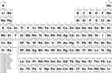 | Keywords: Periodic table simple pl bw.svg en Simple periodic table with localized element names and standard atomic weights IUPAC 2009 Temporarily converted to paths till fixing Wikipedia s font problem with DejaVu Sans Condensed but also the previous version of this image works correctly outside of Wikipedia 2013-11-04 01 26 03 own LĂĄszlĂł NĂ©meth Source code ; Created in LibreOffice 4 1 2 with this LibreLogo program ; Usage Put this code into an English language document in LibO Writer ; fix one program line for older LibreOffice versions see FIXME in the code ; and click on the Start icon of the View»Toolbars»Logo toolbar ; NEED INTERNET CONNECTION TO RUN THIS PROGRAM table data downloaded from Wikipedia lang input Language af ca cs de el en et fi fr it nl pt pt-br bw int input Color 0 COLORED 1 BLACK/WHITE ; Source pages http //www wikidata org/wiki/Q13584100 ; data fields Wikipedia page column of element names sorting by this column optional sources ru D0 A1 D0 BF D0 B8 D1 81 D0 BE D0 BA_ D1 85 D0 B8 D0 BC D0 B8 D1 87 D0 B5 D1 81 D0 BA D0 B8 D1 85_ D1 8D D0 BB D0 B5 D0 BC D0 B5 D0 BD D1 82 D0 BE D0 B2 2 fr Liste_des_ C3 A9l C3 A9ments_chimiques 2 de Liste_der_chemischen_Elemente 1 3 el CE 9A CE B1 CF 84 CE AC CE BB CE BF CE B3 CE BF CF 82_ CF 87 CE B7 CE BC CE B9 CE BA CF 8E CE BD_ CF 83 CF 84 CE BF CE B9 CF 87 CE B5 CE AF CF 89 CE BD_ CE BA CE B1 CF 84 CE AC_ CE B1 CF 84 CE BF CE BC CE B9 CE BA CF 8C_ CE B1 CF 81 CE B9 CE B8 CE BC CF 8C 2 it Elementi_per_numero_atomico 2 hu K C3 A9miai_elemek_list C3 A1ja 3 ca Llista_d 27elements_per_nombre_at C3 B2mic 2 no Grunnstoffliste 2 cs Seznam_chemick C3 BDch_prvk C5 AF 3 uk D0 A1 D0 BF D0 B8 D1 81 D0 BE D0 BA_ D1 85 D1 96 D0 BC D1 96 D1 87 D0 BD D0 B8 D1 85_ D0 B5 D0 BB D0 B5 D0 BC D0 B5 D0 BD D1 82 D1 96 D0 B2 2 et Keemiliste_elementide_loend 2 nl Lijst_van_elementen 2 3 fi Luettelo_alkuaineista 2 3 eo Listo_de_kemiaj_elementoj_la C5 AD_atomnumero 3 pt Anexo Lista_de_elementos_qu C3 ADmicos 2 sv Lista_ C3 B6ver_grund C3 A4mnen 2 3 af Lys_van_elemente_volgens_atoomgetal 2 pl Pierwiastki_chemiczne_wed C5 82ug_liczby_atomowej 2 IF lang en langpage sourceslang 20 langfield sourceslang 21 ; column with element names on the Wikipedia page IF COUNT sourceslang 2 3 langsort sourceslang 22 langsort 0 GLOBAL annotation posx posy size font font2 lang font DejaVu Sans font2 DejaVu Sans Condensed ; Wikimedia has got problem with it convert the result to path in Inkscape if needed posx 30 posy 40 size 42 ; load and process element data from Wikipedia embedded Python exec import urllib request exec data urllib request urlopen http //en wikipedia org/w/index php action raw title List_of_elements readlines exec table for j in i decode utf-8 replace style \\\ background-color 0x replace \\\ split for i in data if re match \ \d+ \ \ i decode utf-8 ; load and process other language data IF lang en exec data urllib request urlopen http // s wikipedia org/w/index php action raw title s readlines lang 2 langpage IF langsort > 0 exec langtable i decode utf-8 split d-1 split 0 split -1 strip \t split 0 split < 0 split 0 strip \t split -1 int i decode utf-8 split d-1 strip \t for i in data if re match \ \t \d+ \t \ \ i decode utf-8 langfield langsort exec import operator exec langtable sort key operator itemgetter 1 exec langtable i0 for i in langtable IF lang no exec data i decode utf-8 replace replace encode utf-8 for i in data IF lang pl exec data i decode utf-8 replace 0 replace replace \x27 encode utf-8 for i in data exec langtable i decode utf-8 replace <td> replace </td> split d split / 0 strip split -1 split 0 for i in data if re match <tr><td> \ \d+ </td> \ \ i decode utf-8 langfield-1 langtable ; a few fixes table793 Mercury ; instead of Mercury element table117 24 31 ; Mg table257 55 85 ; Fe table637 157 3 ; Gd ; add missing positions TO the table FOR i IN RANGE 56 71 tablei5 i 56 4 tablei6 8 5 FOR i IN RANGE 88 103 tablei5 i 88 4 tablei6 9 5 IF lang pt OR lang pt-br FOR i in 1 HidrogĂ©nio/HidrogĂȘnio 7 Azoto/NitrogĂȘnio 8 OxigĂ©nio/OxigĂȘnio 10 NĂ©on/NeĂŽnio 18 Ărgon/ArgĂŽnio 33 ArsĂ©nio/ArsĂȘnio 34 SelĂ©nio/SelĂȘnio 36 CrĂpton/CriptĂŽnio 40 ZircĂłni/ZircĂŽni 42 MolibdĂ©nio/MolibdĂȘnio 44 RutĂ©nio/RutĂȘnio 51 AntimĂłnio/AntimĂŽnio 54 XĂ©non/XenĂŽnio 74 TungstĂ©nio/TungstĂȘnio 75 RĂ©nio/RĂȘnio 86 RĂĄdon/RadĂŽnio 93 NeptĂșnio/NetĂșnio 94 PlutĂłnio/PlutĂŽnio 97 BerkĂ©lio/BerquĂ©lio 99 EinstĂ©nio/EinstĂȘnio 103 LaurĂȘncio/LawrĂȘncio IF lang pt-br ptbr 1 ptbr 0 langtablei0-1 i1 split / ptbr ; helper functions TO width_of_last_object OUTPUT _ drawpage getByIndex _ drawpage getCount -1 getSize Width / 100 __MM_TO_PT__; IN PT END ; FIXME remove the space before the END TO delete_last_object _ drawpage remove _ drawpage getByIndex _ drawpage getCount -1 END TO element size d l18n bw PENUP POSITION posx + INT d5 size posy + FLOAT d6 size 1 2 HEADING 0 ; show group number IF INT d0 IN 1 2 4 5 6 7 8 9 21 22 23 24 25 26 27 28 29 30 IF lang in af ca en eo no pl pt pt-br sv FORWARD size/2 + size/5 LABEL 0 1 d5 FORWARD size/2 + size/5 LABEL 0 4 5 d5 groupname 1 I ŻA 2 II ŻA 3 III ŻB 4 IV ŻB 5 V ŻB 6 VI ŻB 7 VII ŻB 8 9 VIII ŻB 10 ź 11 I ŻB 12 II ŻB 13 III ŻA 14 IV ŻA 15 V ŻA 16 VI ŻA 17 VII ŻA 18 VIII ŻA d5 IF lang not in hu groupname SUB groupname FONTSIZE 10 LABEL 0 1 groupname BACK size/2 + size/5 IF bw FILLCOLOR WHITE FILLCOLOR INT d1 PENDOWN RECTANGLE size size 1 2 PENUP IF M IN d2 OR m IN d2 OR 2 < COUNT d2 FONTFAMILY font2 FONTFAMILY font FONTWEIGHT BOLD FONTSIZE size/2 1 TEXT d2 FONTWEIGHT UPRIGHT FONTFAMILY font BACK size 1 2/2-size/20 fontsiz 5 6 FONTSIZE size/fontsiz IF l18n name l18nINT d0 -1 name d3 if lang de name name lower LABEL 0 1 name fontdescratio 492/2048 ; DejaVu Sans Condensed IF width_of_last_object > size 0 95 delete_last_object FONTFAMILY font2 LABEL 0 1 name width width_of_last_object IF width > size 0 95 delete_last_object fontsiz2 siz