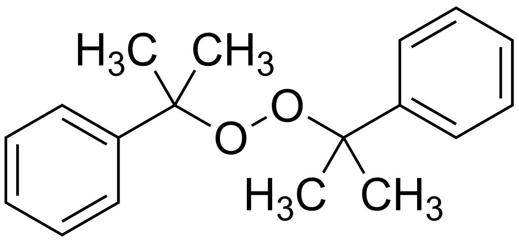 | Keywords: (peroxybis(propane-2,2-diyl))dibenzene 200.svg validSVG Structure of peroxybis propane-2 2-diyl dibenzene Own 2014-04-12 Emeldir <span class signature-talk >talk</span> Chemical structure verified https //upload wikimedia org/wikipedia/commons/2/2a/ 28peroxybis 28propane-2 2C2-diyl 29 29dibenzene_200 svg 1S/C18H22O2/c1-17 2 15-11-7-5-8-12-15 19-20-18 3 4 16-13-9-6-10-14-16/h5-14H 1-4H3 XMNIXWIUMCBBBL-UHFFFAOYSA-N 80-43-3 Synonyms <small> alpha alpha '-Dicumyl peroxide alpha -Cumyl peroxide Active dicumyl peroxide Bis alpha alpha -dimethylbenzyl peroxide Bis 1-methyl-1-phenylethyl peroxide Bis 2-phenyl-2-propyl peroxide Bis alpha alpha-dimethylbenzyl peroxide bis alpha alpha-dimethylbenzyl peroxide Cumene peroxide Cumyl peroxide cumyl peroxide Di- alpha -cumyl peroxide Di-alpha-cumyl peroxide di-alpha-cumyl peroxide Di-Cup Di-cup Di-Cup 40C Dicumene hydroperoxide Dicumenyl peroxide dicumyl peroxide Dicumyl peroxide Dicumyl peroxide dry DOT DiCup 40KE Diisopropylbenzene peroxide diisopropylbenzene peroxide Isopropyl benzene peroxide isopropyl benzene peroxide Isopropylbenzene peroxide Luperco 500-40C Luperco 500-40KE Luperox 500 Luperox 500R Luperox 500T Luperox R DC40KEP Luperox R DCSC Percumyl D Percumyl D 40 Perkadox B Perkadox BC Perkadox SB Peroxide bis alpha alpha -dimethylbenzyl 8CI Peroxide bis 1-methyl-1-phenylethyl 9CI Peroxide bis 2 4-dichlorobenzoyl - with phthalic acid dibutyl ester 1 1 WLN 1X1 R OOX1 1 R</small> PD-chem Organic peroxides |