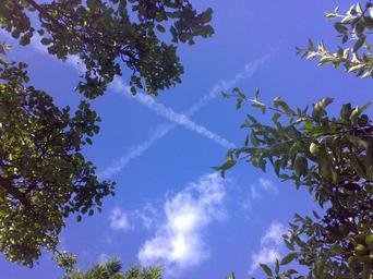 Keywords: Perpendicular contrails.jpg en Aircraft contrails over Nottingham England own <font face Verdana >Jack <small>· talk · </small></font> 22 13 26 July 2008 UTC Contrails photographed from the ground