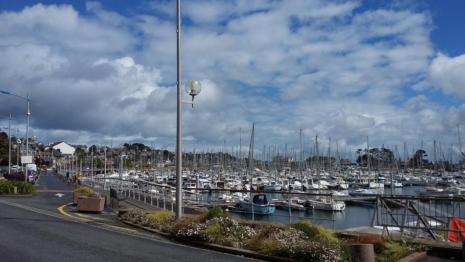 Keywords: perros-guirec france coast port marine yachts water side walk