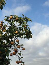 Keywords: persimmon blue sky autumn garden orchard fruit wood