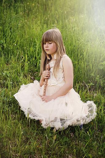Keywords: person human child girl flute music out nature portrait