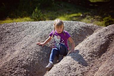 Keywords: person human child girl sand hill stone hill slip nature out in motion