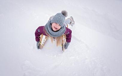 Keywords: person human child girl toboggan slide out nature winter snow fun