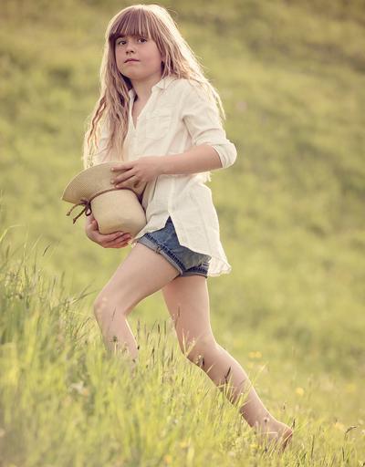 Keywords: person human child girl hat meadow nature fresh out portrait