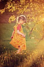 Keywords: person human child girl dress nature out country life evening light lighting portrait