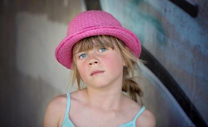 Keywords: person human child girl hat face blue eye view portrait close