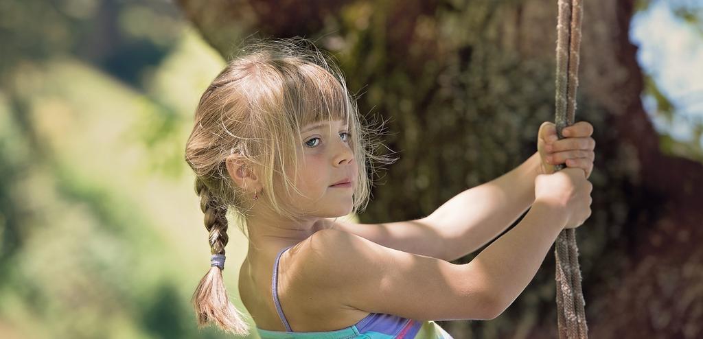 Keywords: person human child girl blond face out play in motion nature portrait close