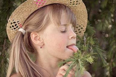Keywords: person human child girl blond hat braids face nonsense out nature exceptional portrait close